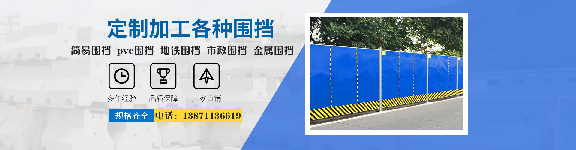 湖北章輝泓宇工程有限公司專注于生產(chǎn)及銷售各類圍擋產(chǎn)品,主要有:簡(jiǎn)易圍擋、pvc圍擋、地鐵圍擋、市政圍擋、金屬圍擋、工地圍擋等建材,誠信經(jīng)營十五年,客戶遍及全國,期待與您真誠合作。